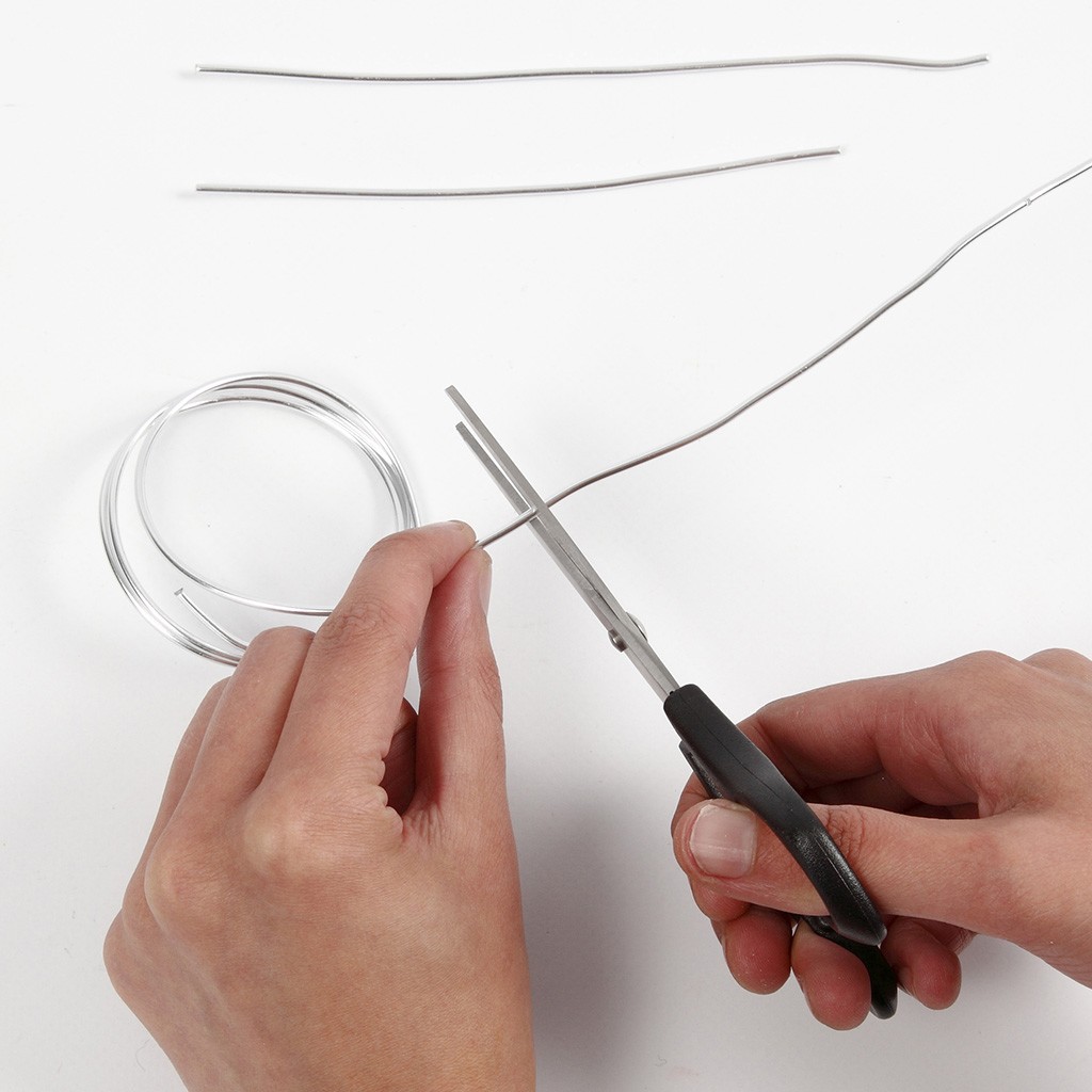 Stap 1 de stengels van je bloemenboeketGebruik het bloemendraad voor de stengels. Wil je de stengel korter dan 30cm knip het draad dan door met een kniptangetje.