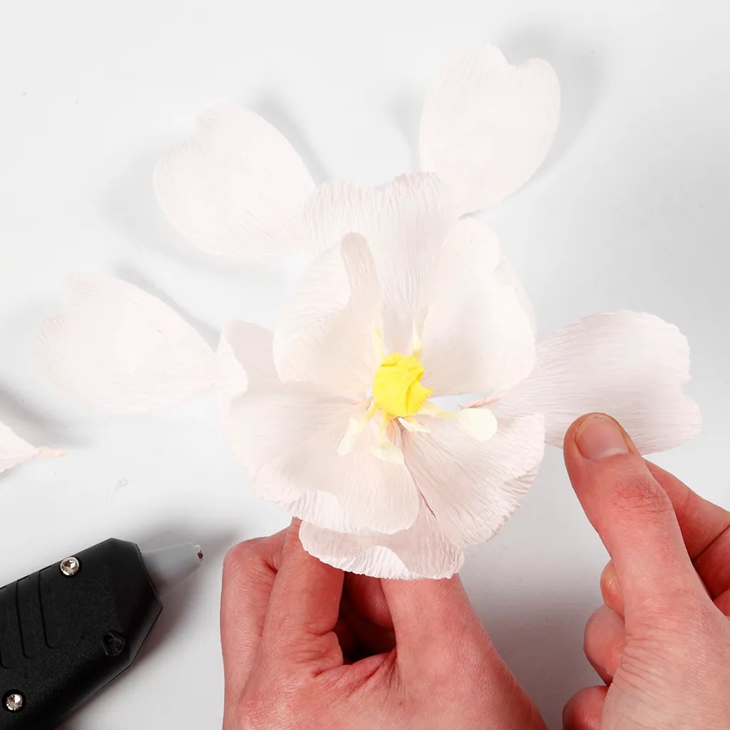 Stap 9Bevestig nog vier bloembladen tussen de eerste vier bloembladen. Bevestig de resterende vier bloembladen op dezelfde manier.