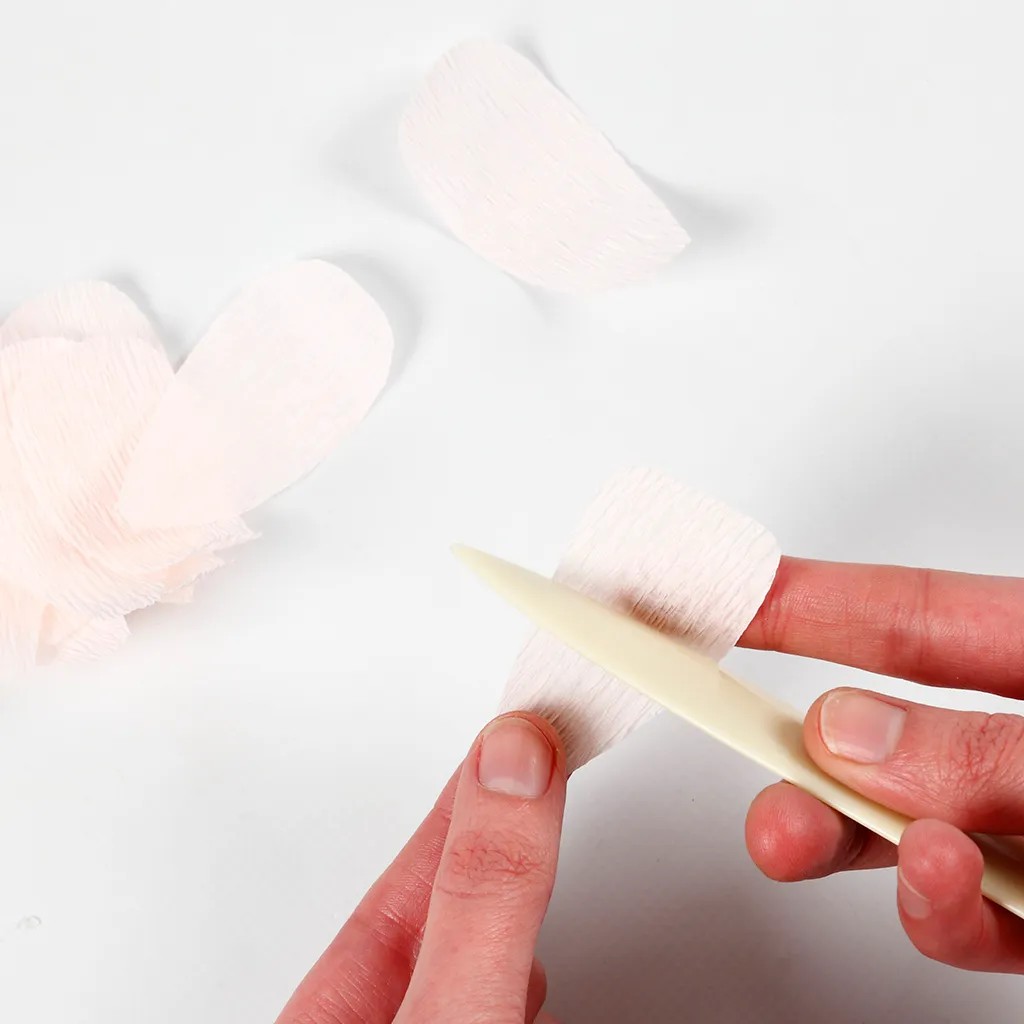 Stap 5Rond elk bloemblad met een vouwbeen door het bloemblad tussen het vouwbeen en je duim te trekken; dezelfde techniek als het krullen van een lint met een schaar.