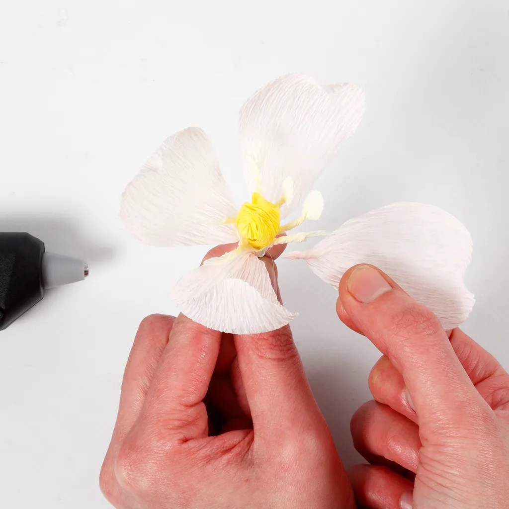 Stap 6Vorm het bloemblad door het midden ervan uit te rekken, zodat het rond wordt. Herhaal deze procedure met alle bloembladen.