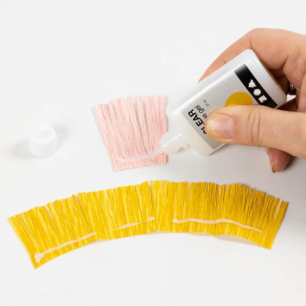 Stap 3Begin met de langste meeldraden en neem dan de korte. Rol ze in één laag op en blijf lijmen.