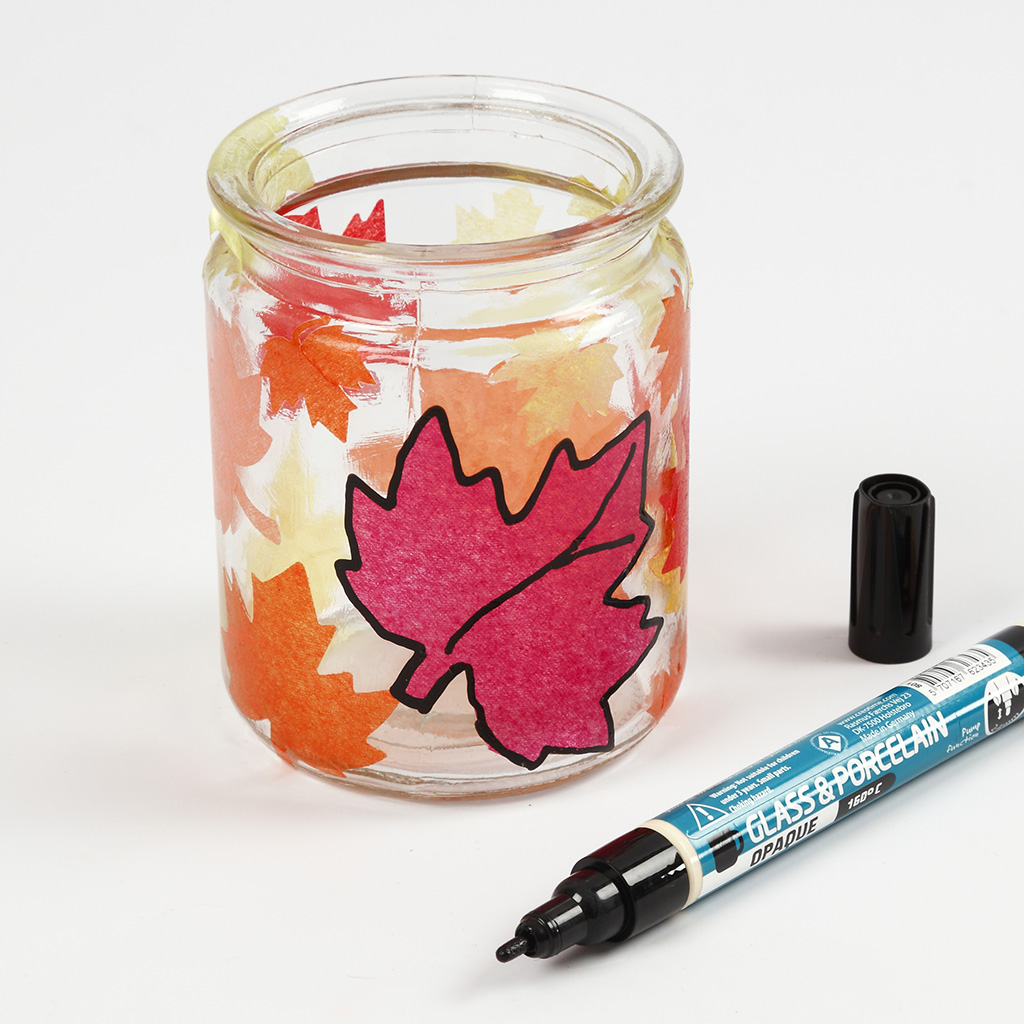 Stap 3Breng details aan met een zwarte glas- en porseleinstift. Laat drogen.