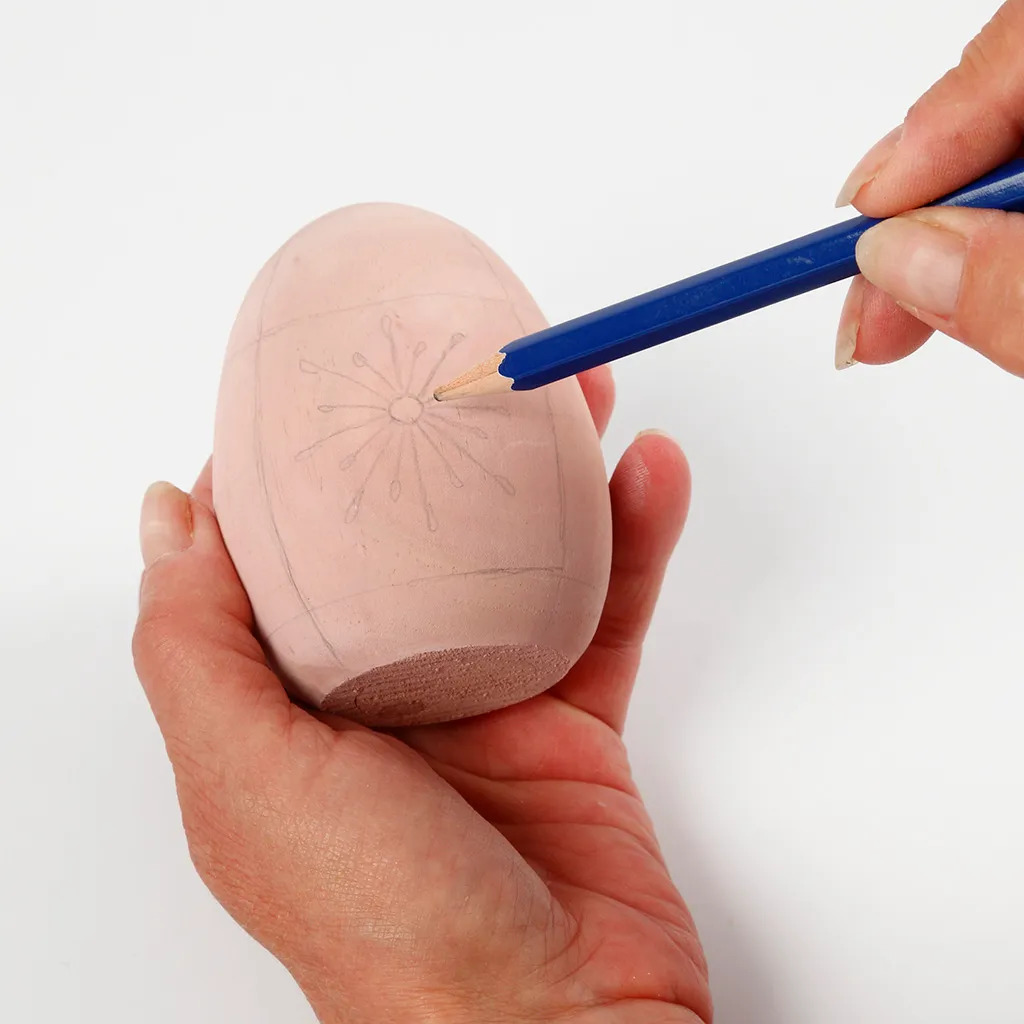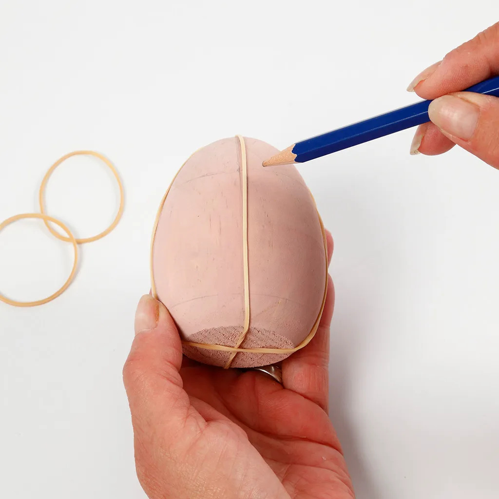 Stap 3Verdeel het ei met een potlood in secties. Gebruik elastiekjes voor rechte lijnen.