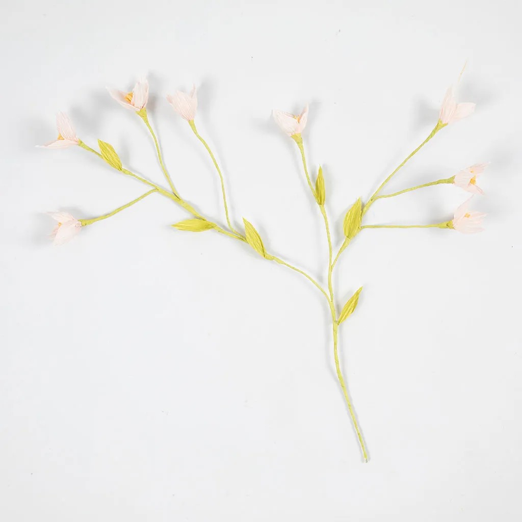 Maak je eigen kersentak van crêpepapier. Druk het sjabloon af, knip de onderdelen uit en knip alle stukjes het crêpepapier. Maak voor elke tak acht bloemen en voor elke bloem drie blaadjes. Maak ook zes kleine blaadjes om tussen de bloemen te decoreren. Plak tot slot bloemen en blaadjes op bloemenprikkers en bedek ze met crêpepapier – gebruik hiervoor een lijmpistool of Multi Glue. Bij Multi Glue is de droogtijd ongeveer ½ – 1 uur per stap.
