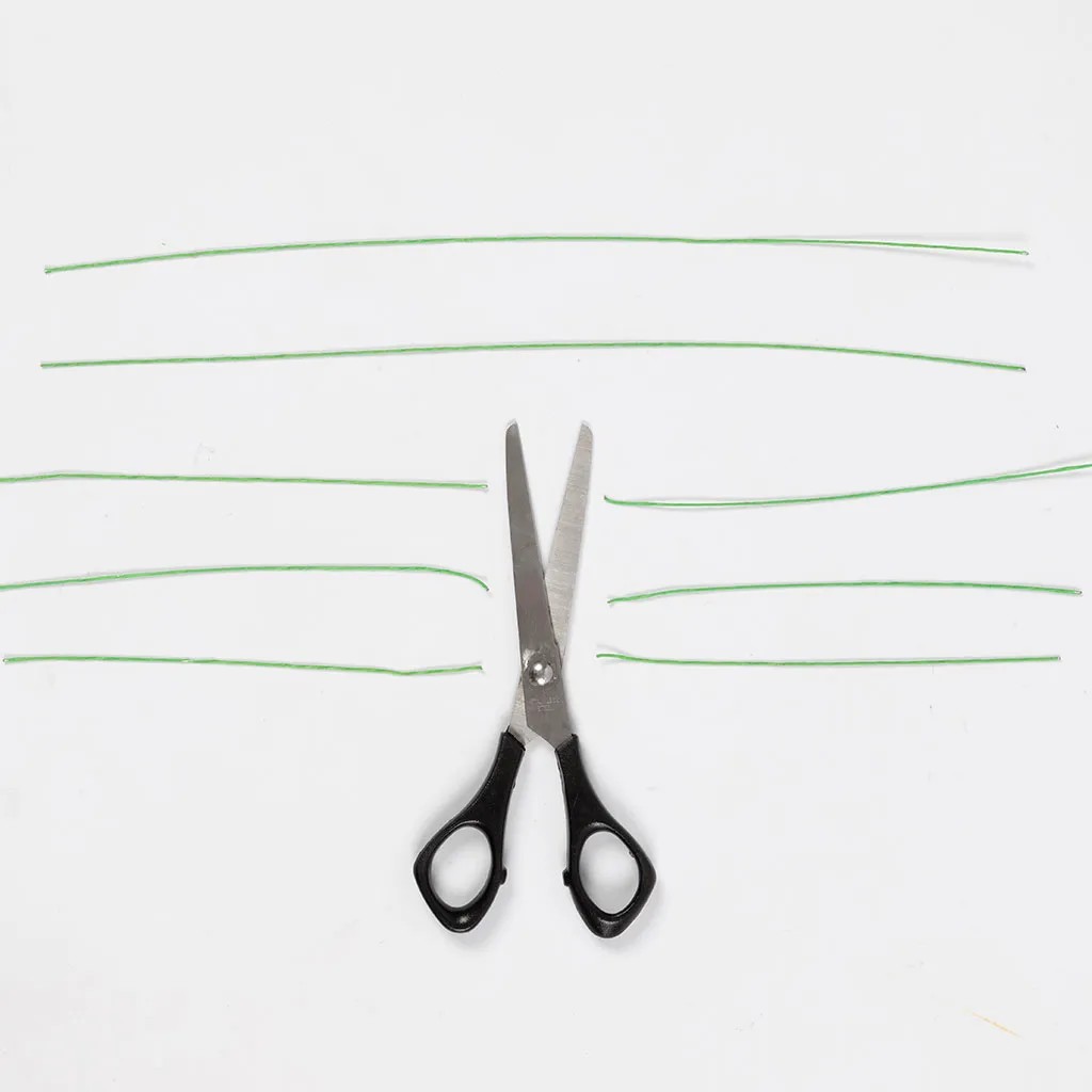 Stap 1Neem vijf dunne bloemenprikkers en snijd er drie doormidden. U hebt nu in totaal acht steeltjes.