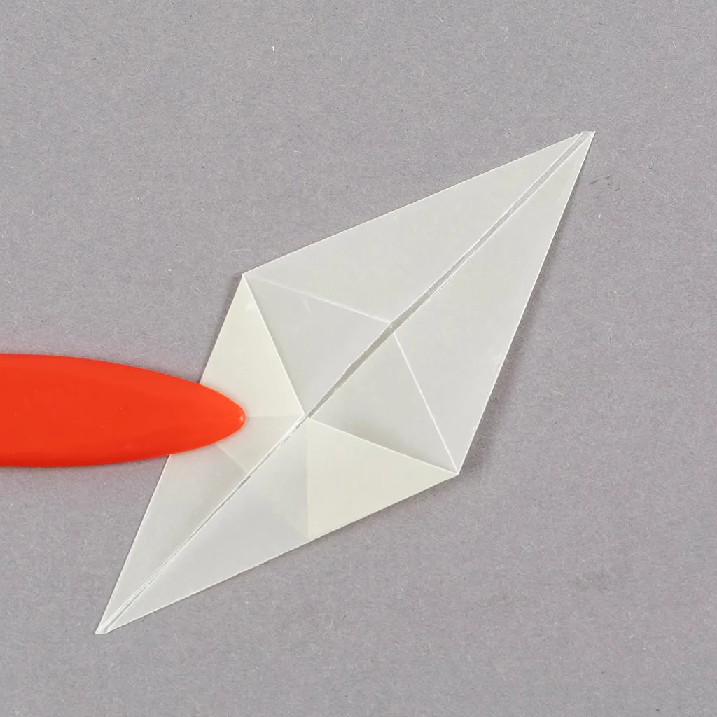 Stap 11Vouw van beide kanten opnieuw diagonaal richting het middelpunt.