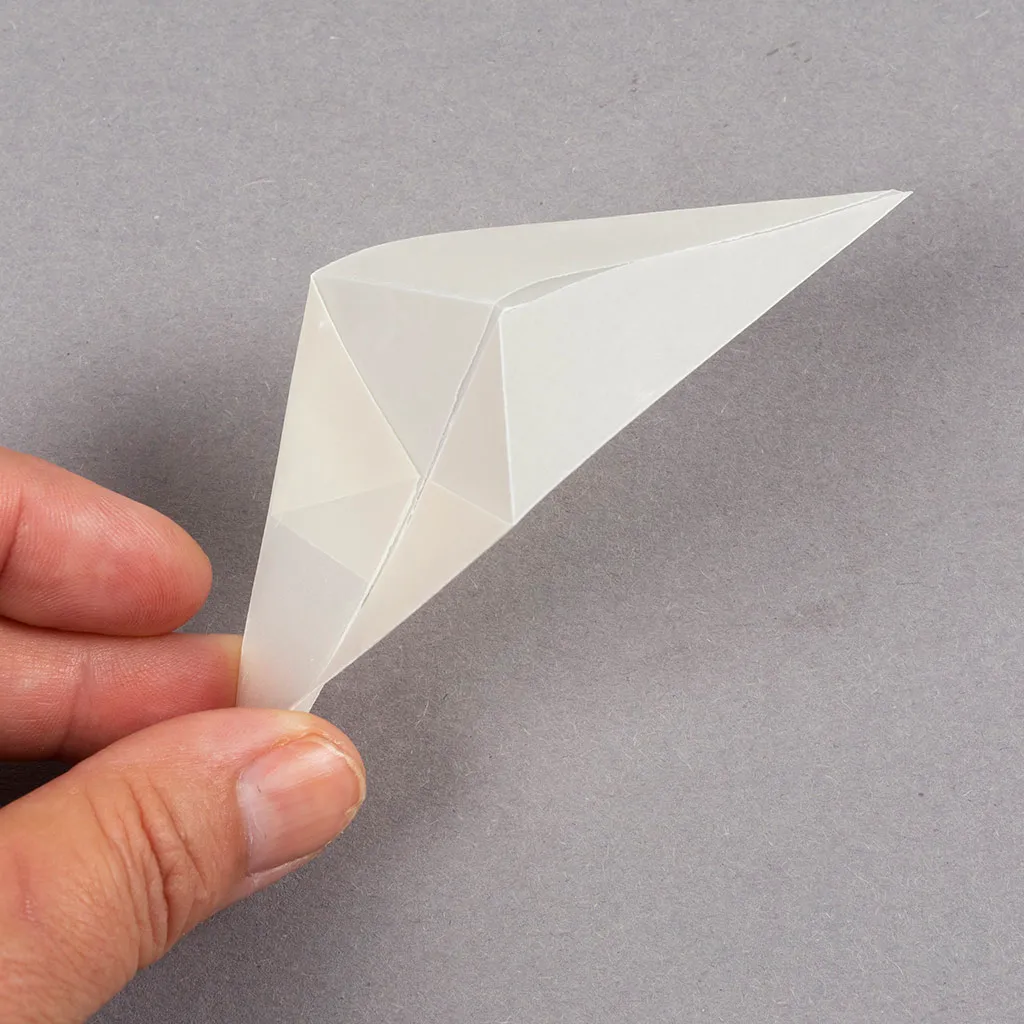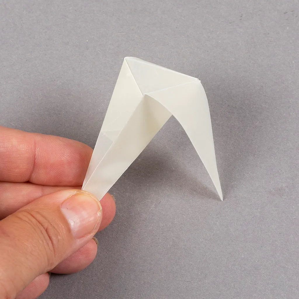 Stap 13Dankzij de vooraf gemaakte vouwlijnen kun je het papier nu eenvoudig in deze hoek plooien.