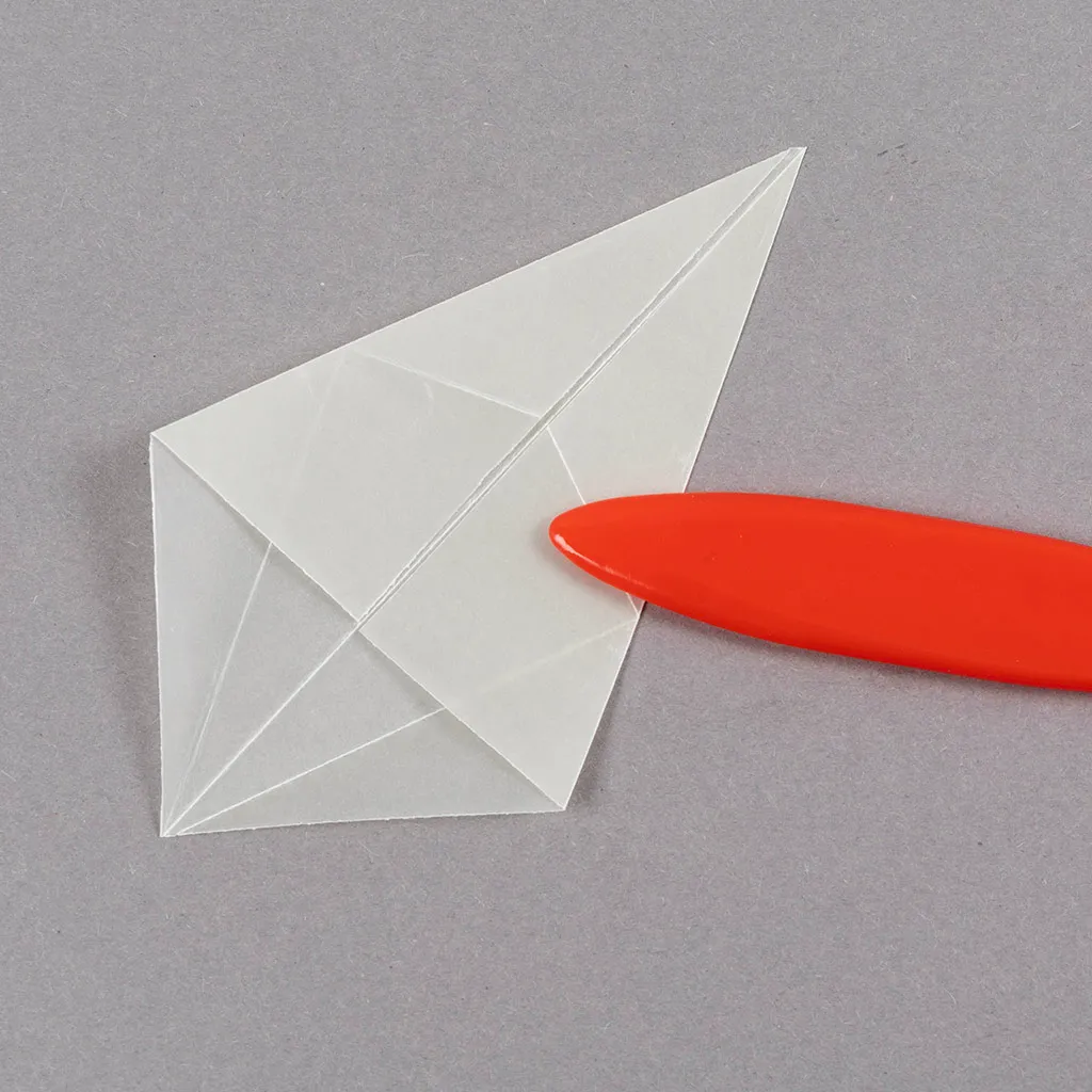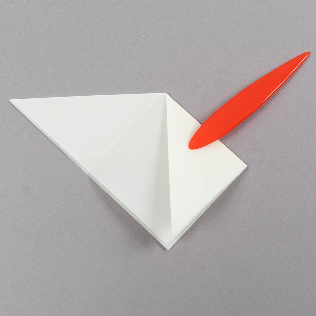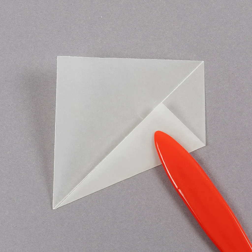 Stap 4Vouw elk papier nu diagonaal naar de andere zijde. Maak de vouwen strak en scherp met behulp van een vouwbeen.