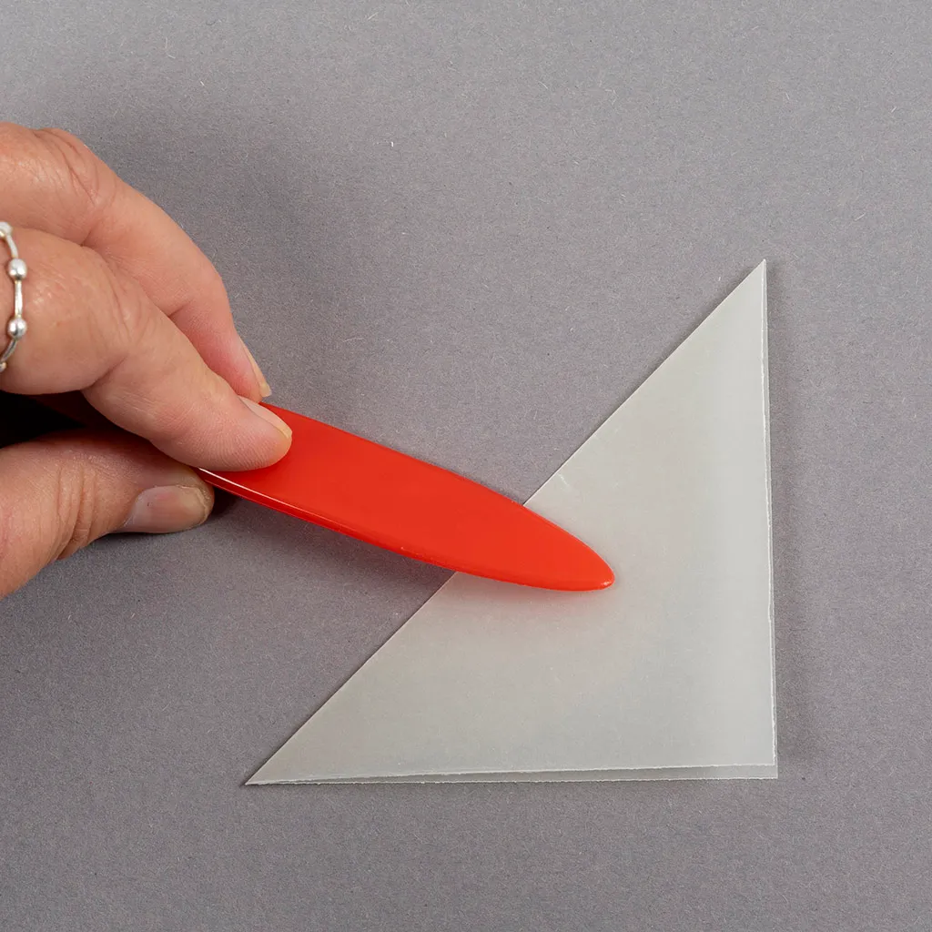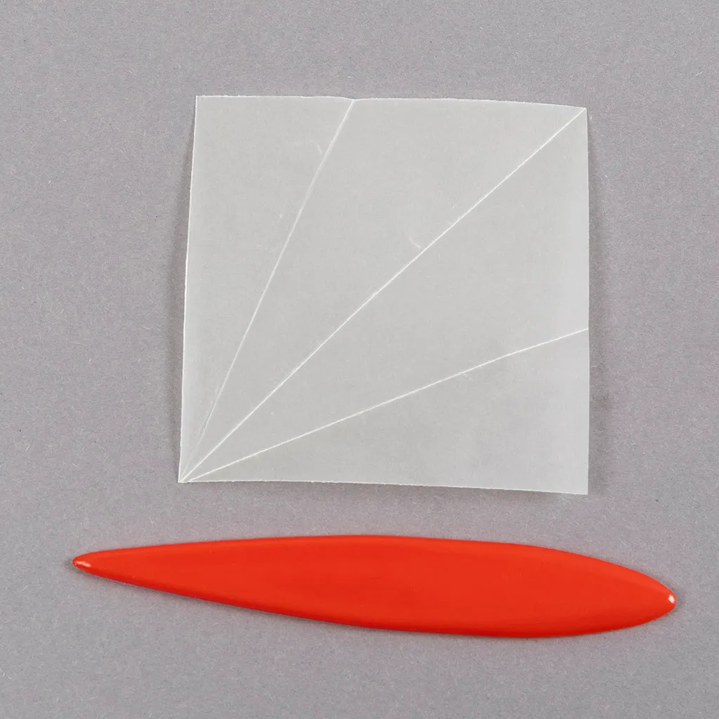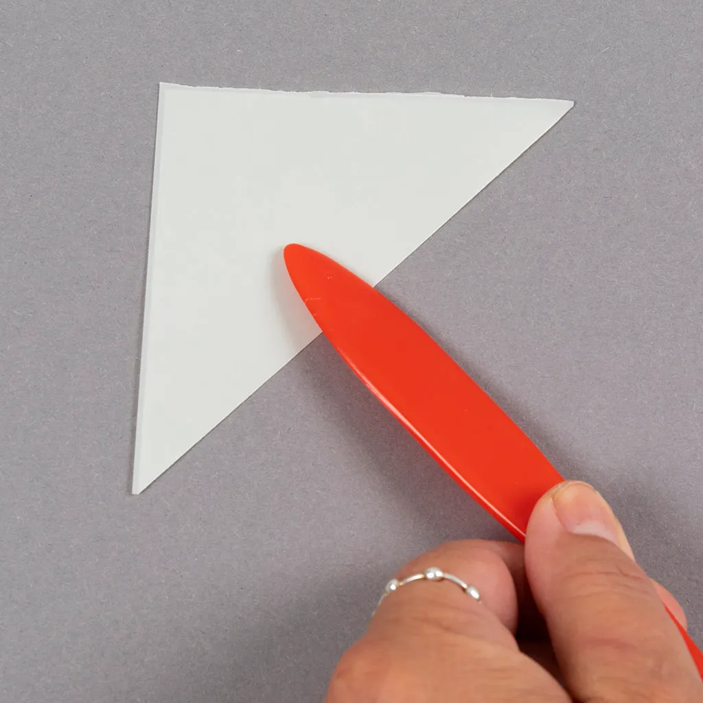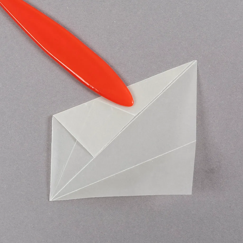 Stap 4Vouw elk papier nu diagonaal naar de andere zijde. Maak de vouwen strak en scherp met behulp van een vouwbeen.