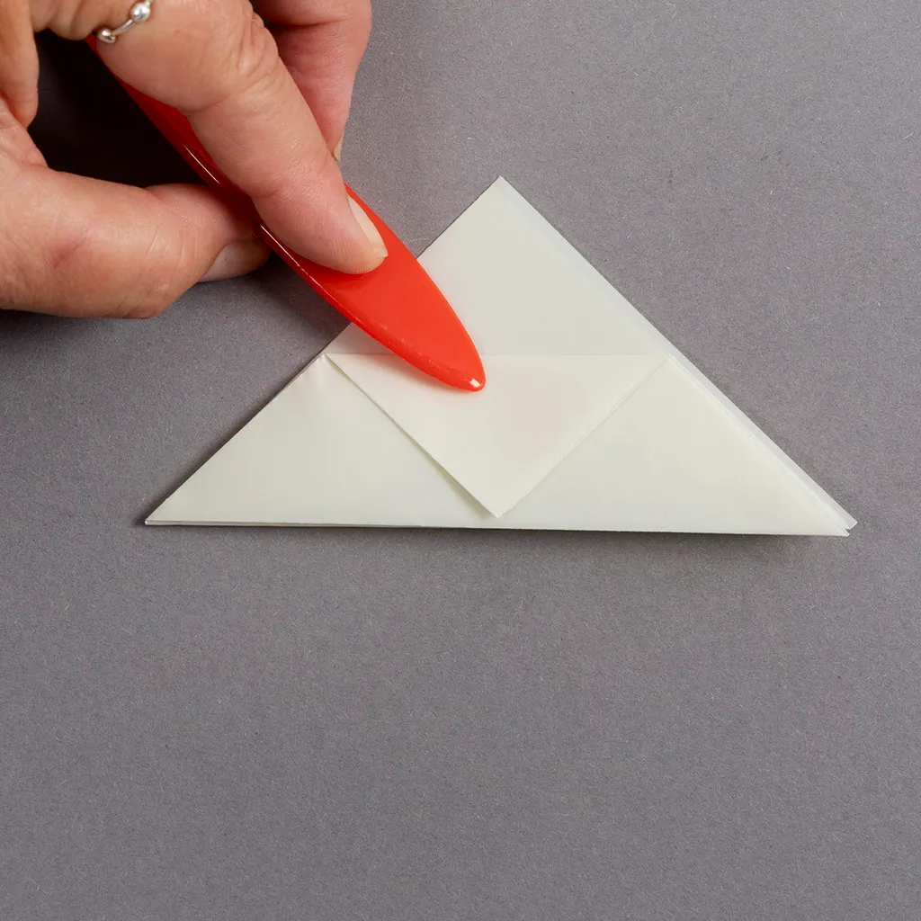 Stap 6Vouw beide zijkanten naar binnen en maak de vouwen strak en scherp met een vouwbeen.