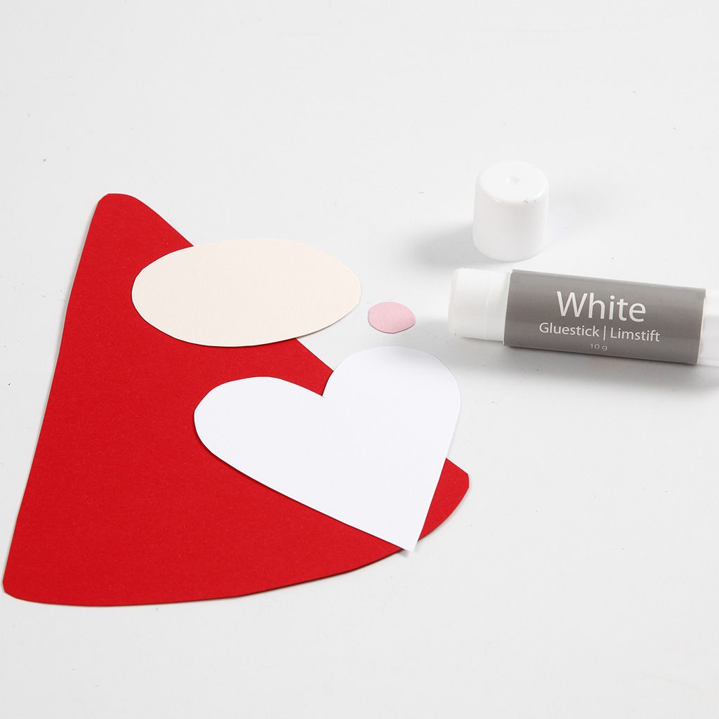 2Gebruik een lijmstift om de onderdelen vast te zetten en zo de volledige kerstfiguur samen te stellen.