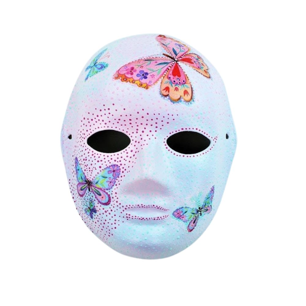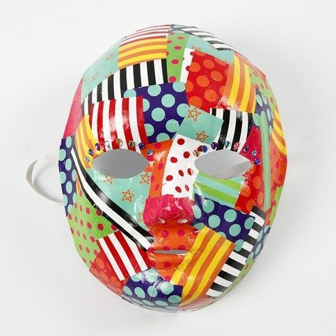 Extra IdeeJe kunt een masker ook van een basiskleur voorzien en er dan alleen uitgeknipte details opplakken met decoupage lijm.