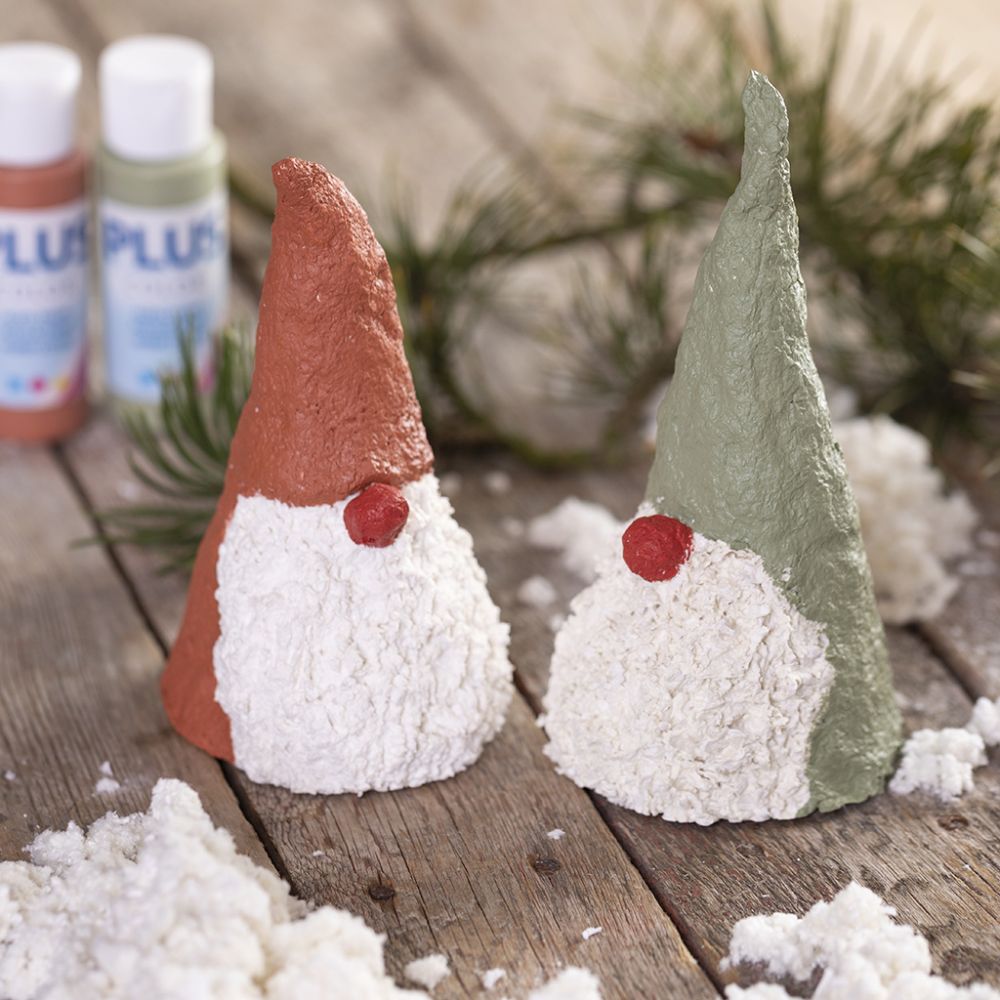 Maak deze nieuwsgierige kabouters door een kegel van papier-maché te bedekken met papierpulp en hem daarna te versieren met hobbyverf.