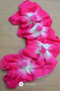 Er zijn verschillende vouwtechieken. Die leggen we je hierna uit. Draag wel handschoenen want anders is niet alleen je kledingstuk of tas gekleurd maar heb je ook regenboog handen.