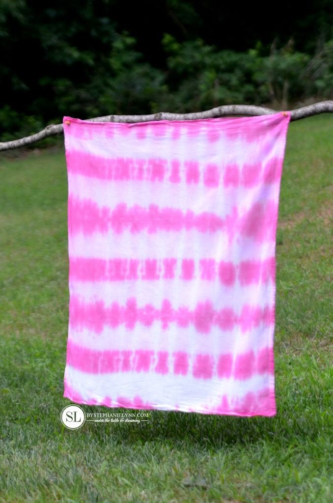 Als je jouw shirt of tas hebt geverfd laat je dit even 30 minuten intrekken. Daarna hang je jouw creatie op een wasrek of aan de droogmolen. Laat het nu op natuurlijke wijze drogen!