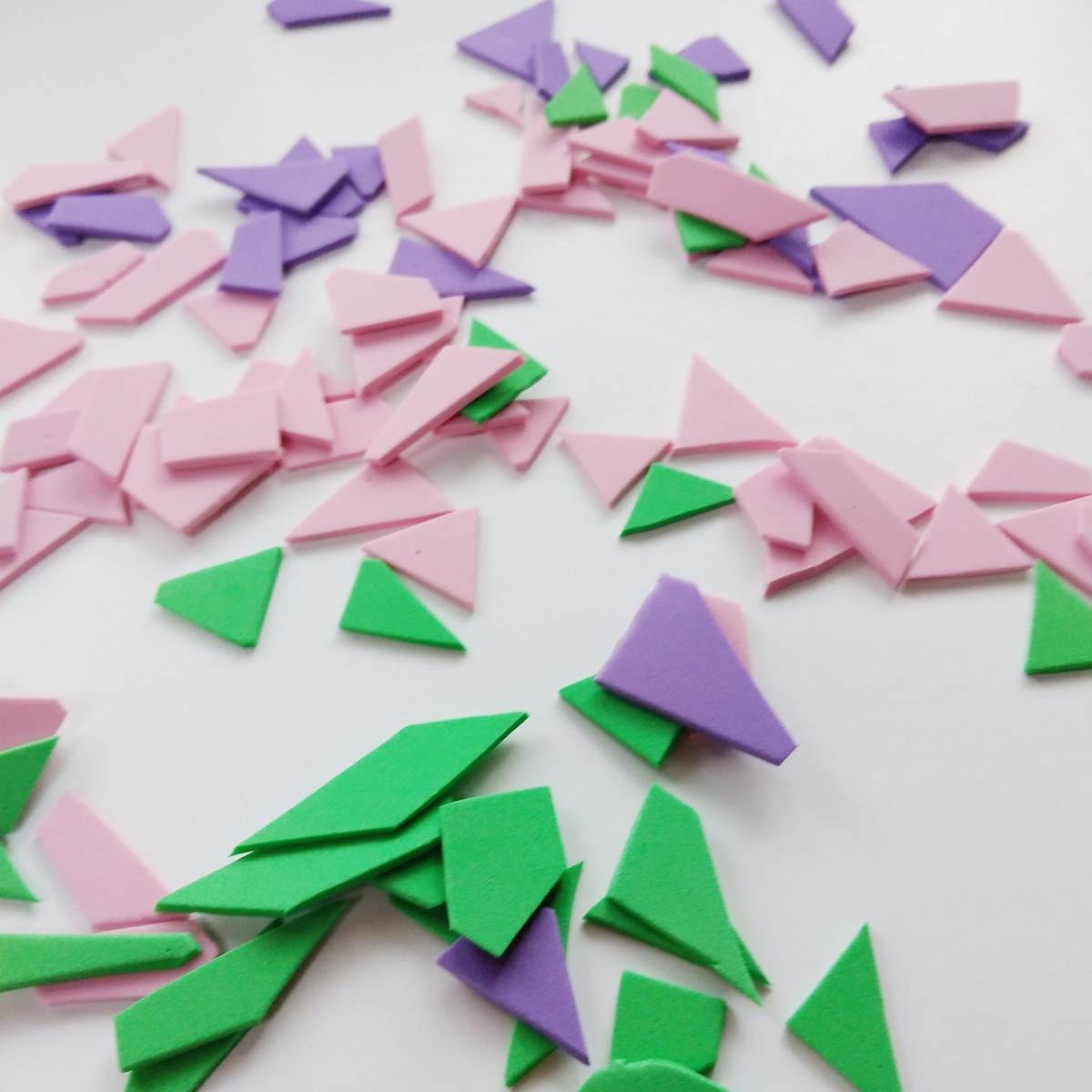 Stap 2Laat de verf goed drogen en knip ondertussen stukjes foam in verschillende kleuren, groottes en vormen.