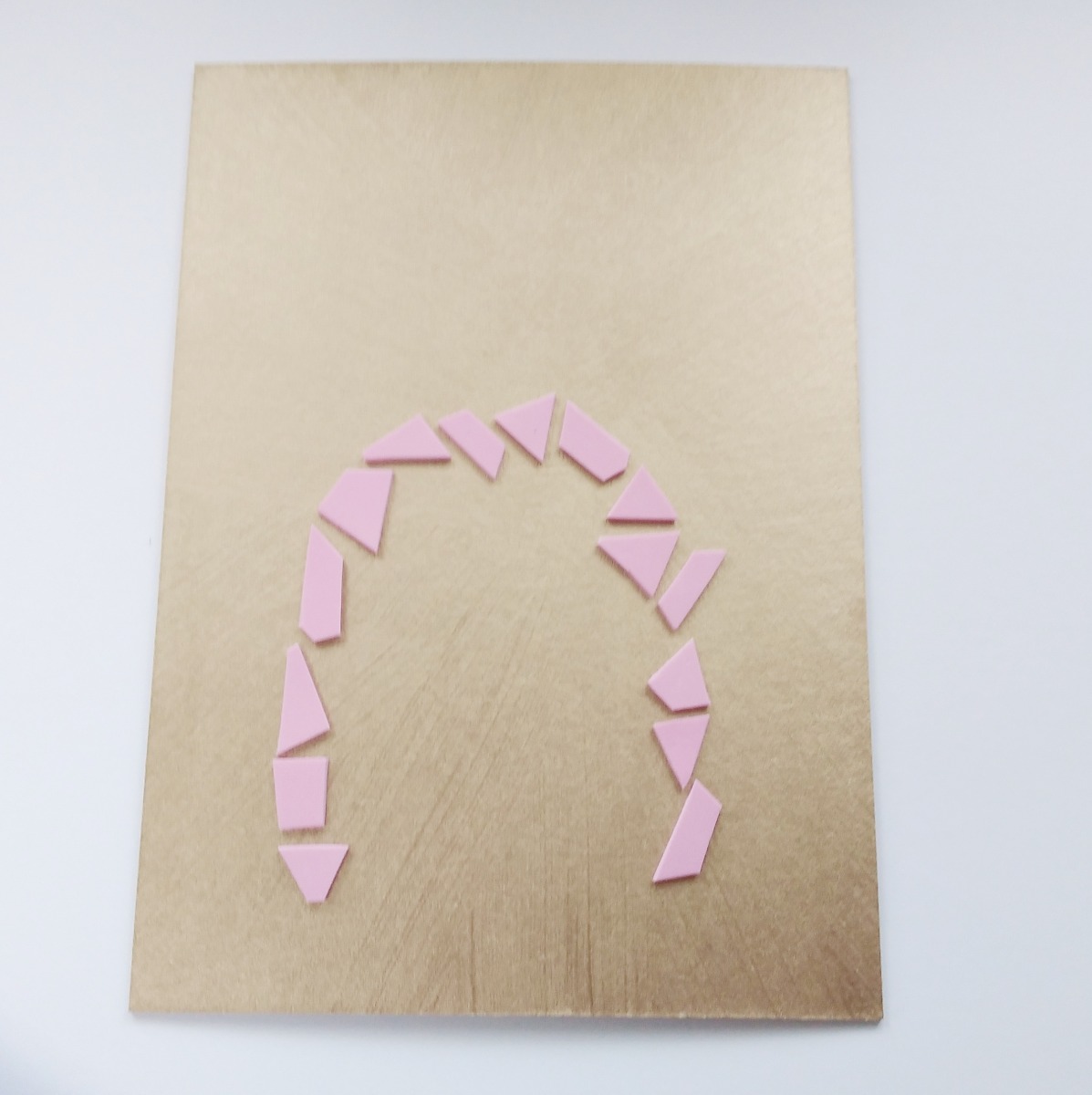 Stap 3Leg als eerste de stukjes foam los op het karton en start met de omtrek van het grote figuur dat je gaat maken.