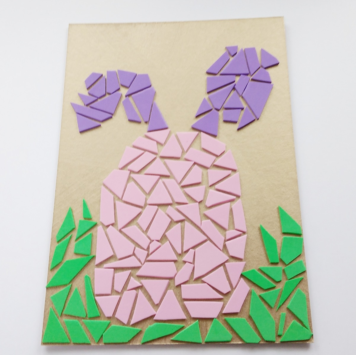 Knip zelf je mozaïek uit verschillende kleuren foamvellen en creëer op die manier je eigen unieke tekening of versier er een leuk doosje mee. Je bepaald zelf de grootte van de stukken, dus je kleinere broertje of zusje kan ook mee doen en zelf opplakken.