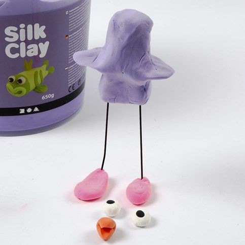 Stap 2Het lijf van de kip is gemaakt van Silk Clay. Ook de ogen en snavel kunnen gemaakt worden van Silk Clay. Deze kun je bevestigen door ze op het lijf te drukken. Hiervoor is geen extra lijm nodig.