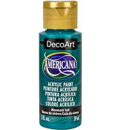 Mermaid Tail is een sprankelende blauwgroene tint met een echte mermaid vibe—fris, magisch en perfect voor fantasy sferen, Deze Americana Acrylics verf (59 ml) is een watergedragen acrylverf met matte afwerking en een medium body, Daardoor schilder je soepel, droogt de verf mooi egaal op en bouw je kleur op in strakke lagen,