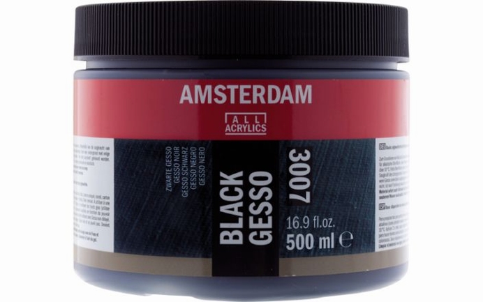 Amsterdam Gesso Zwart 500ml zorgt voor een gelijkmatige, licht absorberende ondergrond waardoor verf beter hecht en kleuren mooi tot hun recht komen.