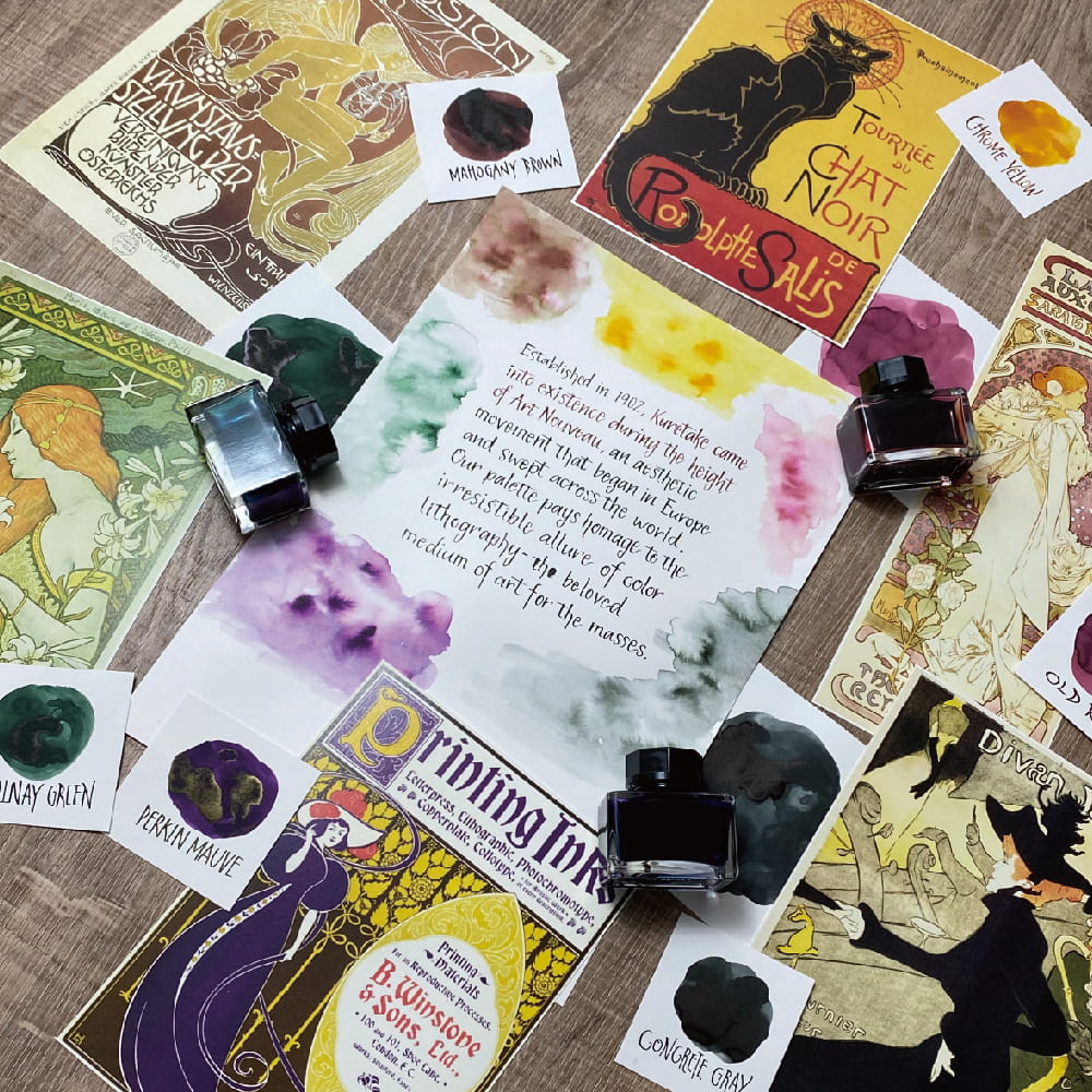 Gebruik Kuretake Ink Café Art Nouveau Zsolnay Green voor florale illustraties, botanische motieven, sierlijke kalligrafie of Art Nouveau- en fantasy-geïnspireerde ontwerpen, Ook voor cosplay- en fantasyontwerpers is deze inkt ideaal om conceptschetsen, ornamenten en decoratieve details een natuurlijke en artistieke uitstraling te geven,