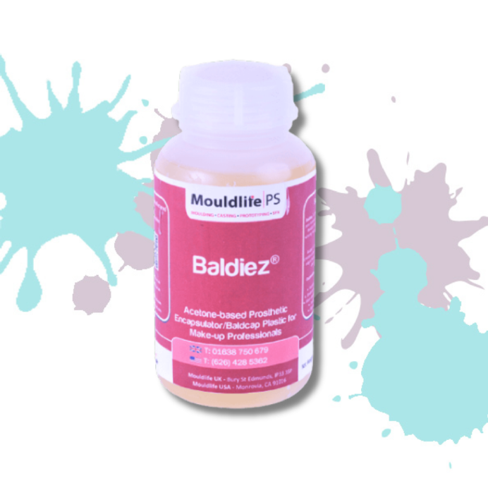 De Baldiez 500ml is de ruime studioverpakking van deze populaire alcoholoplosbare filmvormer. Perfect voor SFX-labs, grimeurs en special effects-afdelingen die regelmatig siliconen- of gelatineprotheses produceren.