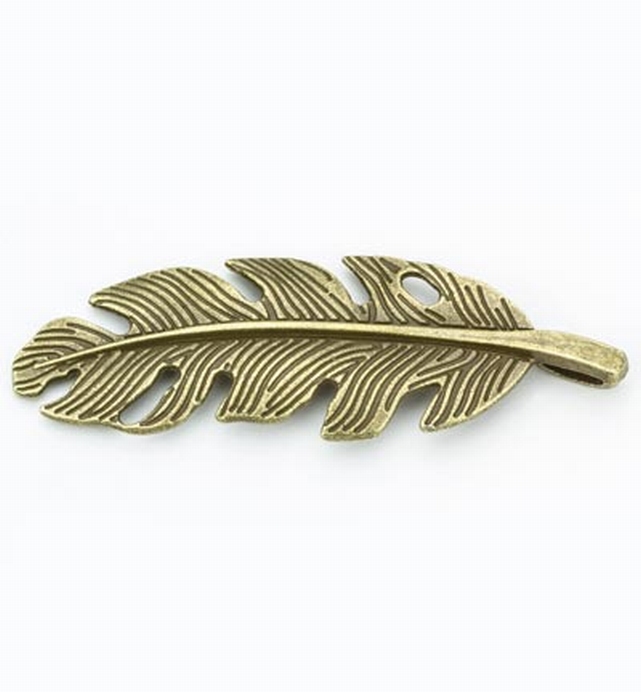 Geef je sieraden en accessoires een elegante, boho‑touch met deze grote veerbedel in antiek goudkleur. Perfect als statement‑hanger aan een ketting, oorbel of tas‑charm.