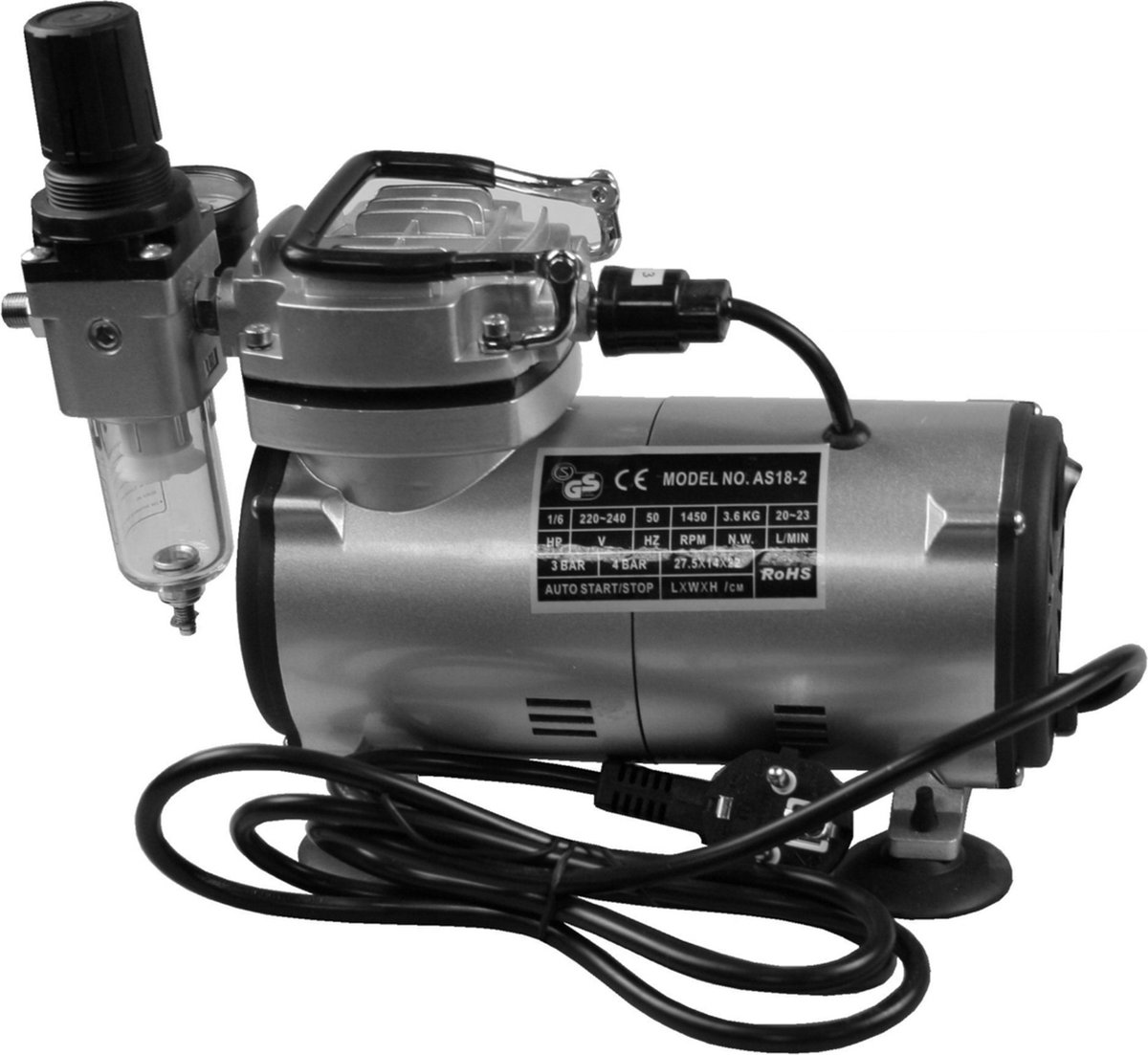 De Mini Compressor Olievrij is een compacte en betrouwbare luchtbron die perfect geschikt is voor airbrushprojecten in hobby, modelbouw, cosplay en SFX. Dankzij de olievrije technologie levert deze compressor schone, gelijkmatige lucht zonder onderhoud, waardoor hij ideaal is voor nauwkeurig spuitwerk met diverse airbrush pistolen. De stille werking en stabiele druk maken dit een veelzijdige airbrush compressor voor zowel beginners als ervaren makers.