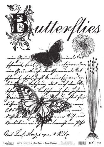Cadence rijstpapier butterflies – tekst – zwart Model No: 01