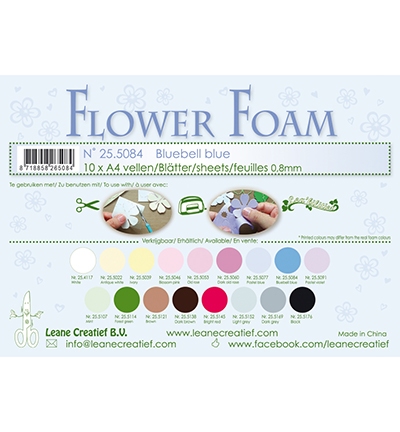 Flower foam sheets – A4 formaat – dikte 0.8mm – 10st BLUEBELL BLAUW is een veelzijdig foam voor bloem- en hobbyprojecten. Het is licht, flexibel en eenvoudig te vormen met warmte. Perfect voor natuurgetrouwe bloemen, decorstukken en creatieve accessoires – van miniaturen tot cosplay.