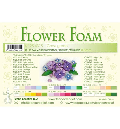 Flower foam sheets – A4 formaat – dikte 0.8mm – 10st GRASS GROEN is een veelzijdig foam voor bloem- en hobbyprojecten. Het is licht, flexibel en eenvoudig te vormen met warmte. Perfect voor natuurgetrouwe bloemen, decorstukken en creatieve accessoires – van miniaturen tot cosplay.