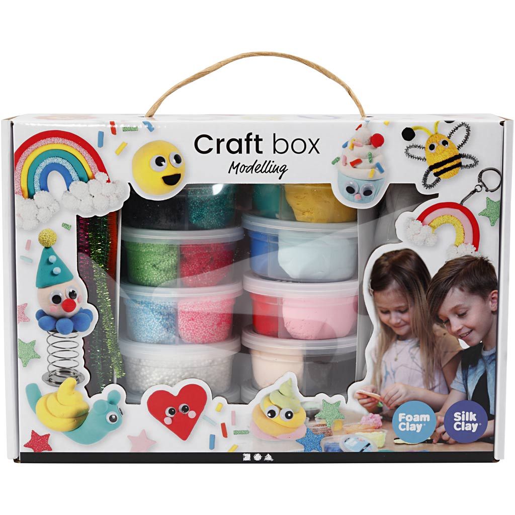 Geef de creativiteit van kinderen én volwassenen een speelse boost met deze uitgebreide Foam Clay® en Silk Clay® set, De set bevat verschillende soorten zelfhardende boetseermassa’s: Silk Clay voor zachte, gladde afwerkingen en Foam Clay (in diverse groottes, waaronder Large en Extra Large) voor levendige, korrelige texturen, Ideaal voor het modelleren van kleurrijke figuren of het bedekken van uiteenlopende voorwerpen,