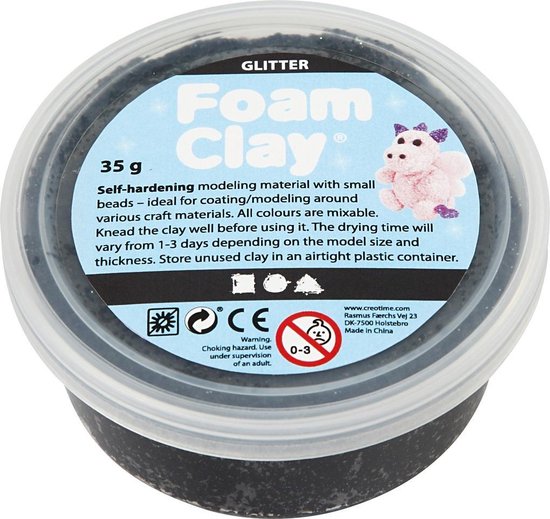 Foam Clay Zwart Glitter geeft je project een stoere en mysterieuze uitstraling. Met zijn glinsterende accenten is deze variant ideaal voor Halloween-creaties, nachtthema’s of stijlvolle decoraties.