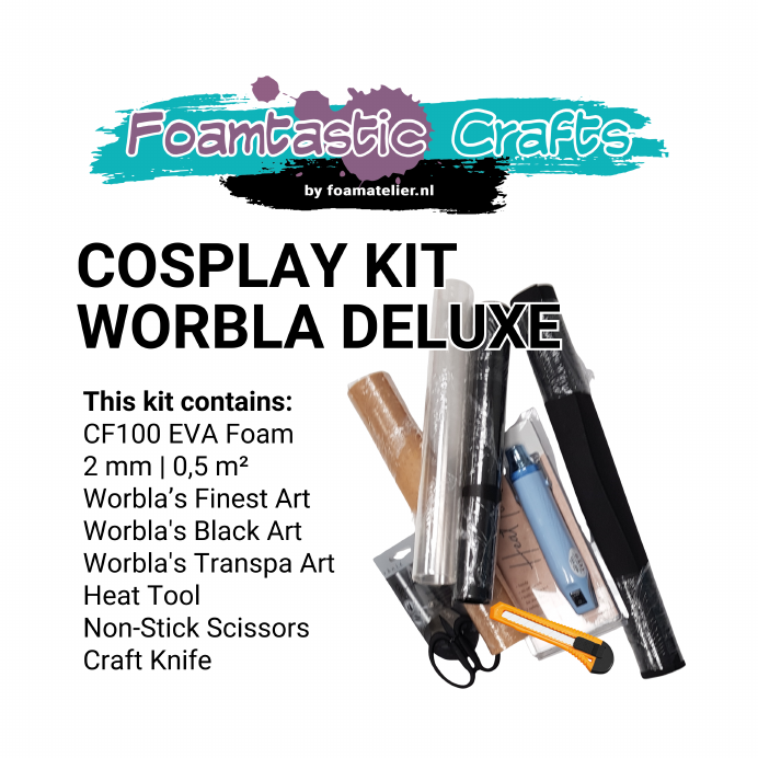 De Foamtastic Cosplay Kit Worbla Deluxe is speciaal samengesteld voor cosplayers die sérieux aan de slag willen met precisie en veelzijdigheid. Deze kit bevat hoogwaardige worbla thermoplastics én EVA foam, in combinatie met handige tools – perfect voor het maken van zowel fijne details als grotere structuurcomponenten.