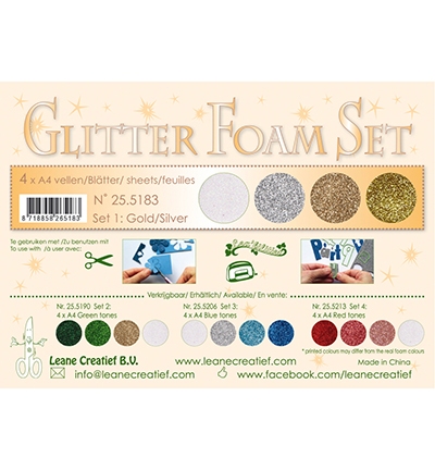 Met deze glitterfoam set krijg je 4 verschillende vellen in sprankelende goud- en zilvertinten. Ideaal voor wie graag varieert in kleur en glans zonder meteen grote hoeveelheden van één kleur te hoeven aanschaffen. De vellen zijn licht, flexibel en voorzien van een stevige glitterlaag.