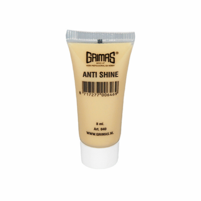Grimas Anti Shine is een transparante matterende gel die speciaal ontwikkeld is om hinderlijke glans op de huid te verminderen. Deze huidvriendelijke primer wordt gebruikt onder of over make-up, schmink of foundation en zorgt voor een langdurig matte finish. Ideaal bij film, fotografie, theater, cosplay of andere situaties waarin je liever geen reflecties of glimplekken ziet.
