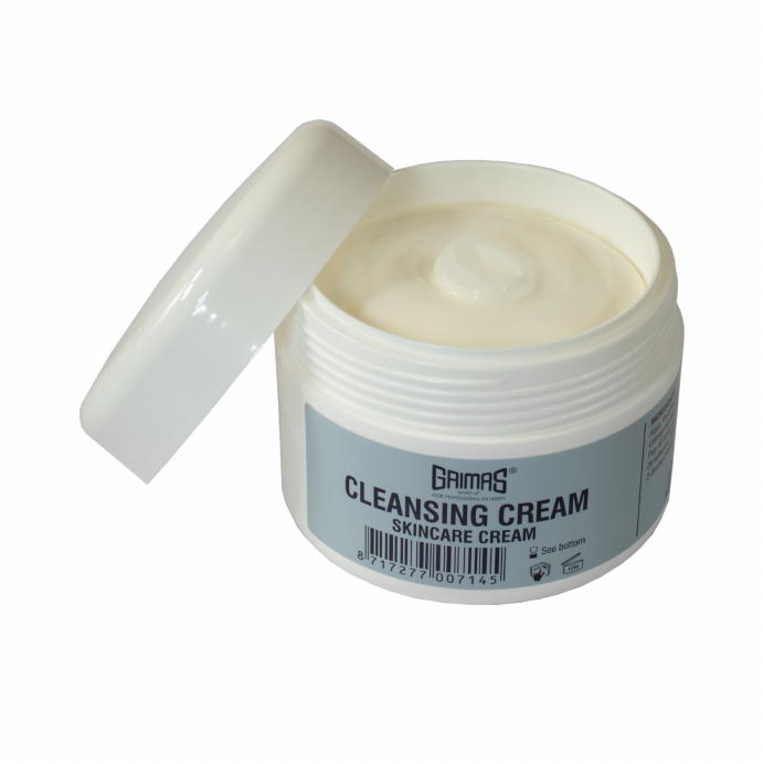 Grimas Cleansing Cream is een milde, huidvriendelijke crème die make-upresten en vuil op een zachte manier verwijdert én tegelijkertijd de huid verzorgt. Ideaal voor na het gebruik van vetgrime, cake make-up of facepaint. Deze multifunctionele crème is zowel een reiniger als een voedende skincare cream en is geschikt voor alle huidtypes, zelfs de gevoelige huid.