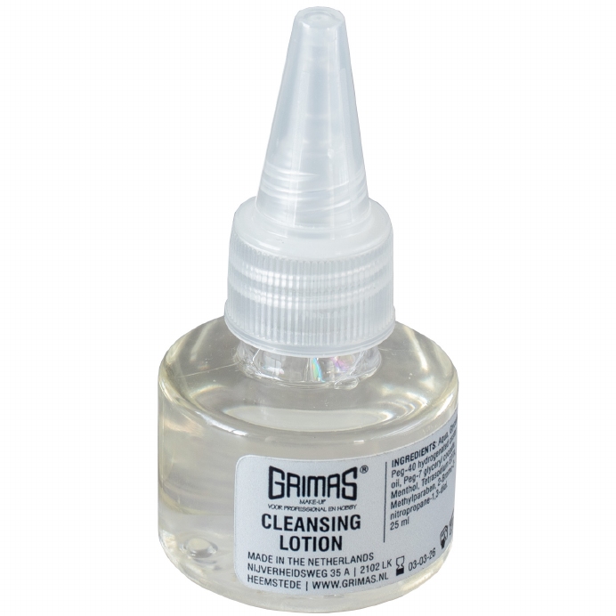 Grimas Cleansing Lotion 25 ml is de praktische mini-variant van de geliefde Cleansing Lotion. Ideaal voor onderweg, in je make-up koffer of op locatie tijdens theater- en cosplayprojecten. Deze lotion reinigt de huid op milde wijze en verwijdert make-up, talg en vuil zonder de huid uit te drogen.