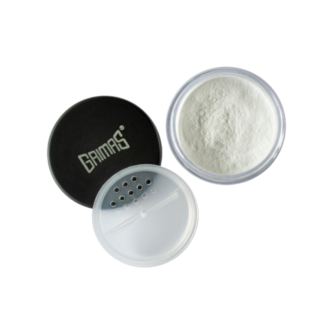 Grimas – Colour Powder – nr: 00 – Basic White – 10 ml is een los, zijdezacht poeder met hoge fixerende kracht en een natuurlijk matte finish. Het fixeert covercream/camouflage en verlengt de draagtijd onder studiolicht of op het podium.