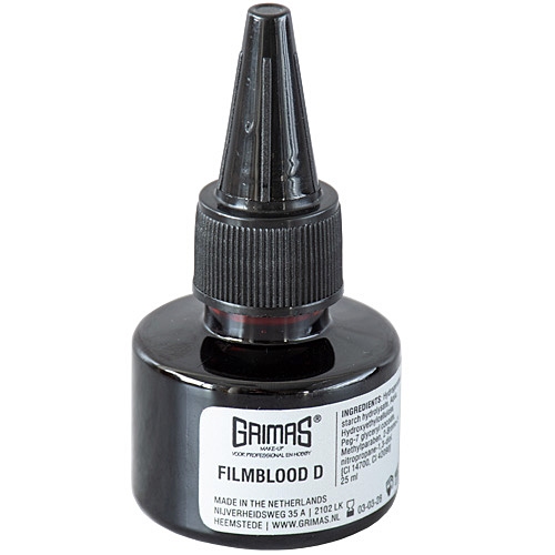 In vergelijking met andere Grimas Filmbloed-varianten is Filmbloed D donkerder van kleur en blijft het mooi op zijn plaats zonder snel weg te lopen. Dit maakt het perfect voor close-up effecten, scènes met verwondingen die ouder of dieper lijken en voor gebruik op huid, kleding of latexprotheses.