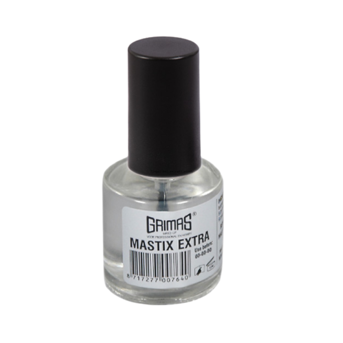 Grimas Mastiek Extra in 10ml verpakking is een krachtige huidlijm op basis van alcoholhars, geschikt voor het bevestigen van kleine protheses, haarwerk, wenkbrauwen of wolcrepe. Dankzij het compacte formaat en het geïntegreerde penseeltje is dit product bijzonder geschikt voor nauwkeurig detailwerk bij grime, theater, cosplay of drag make-up.