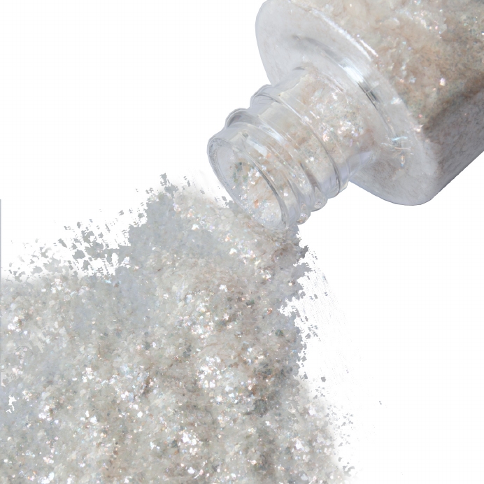 Laat je creaties schitteren met Grimas Shimmer Flakes 701: zachte, huidvriendelijke glansflakes met een subtiele parelmoerfinish. Deze flakes geven een prachtig lichtreflecterend effect en zijn perfect voor glamour make-up, fantasy looks, bodypaint en grime. Dankzij hun platte structuur voelen ze comfortabel aan op de huid en zijn ze ook geschikt voor gebruik rondom de ogen.