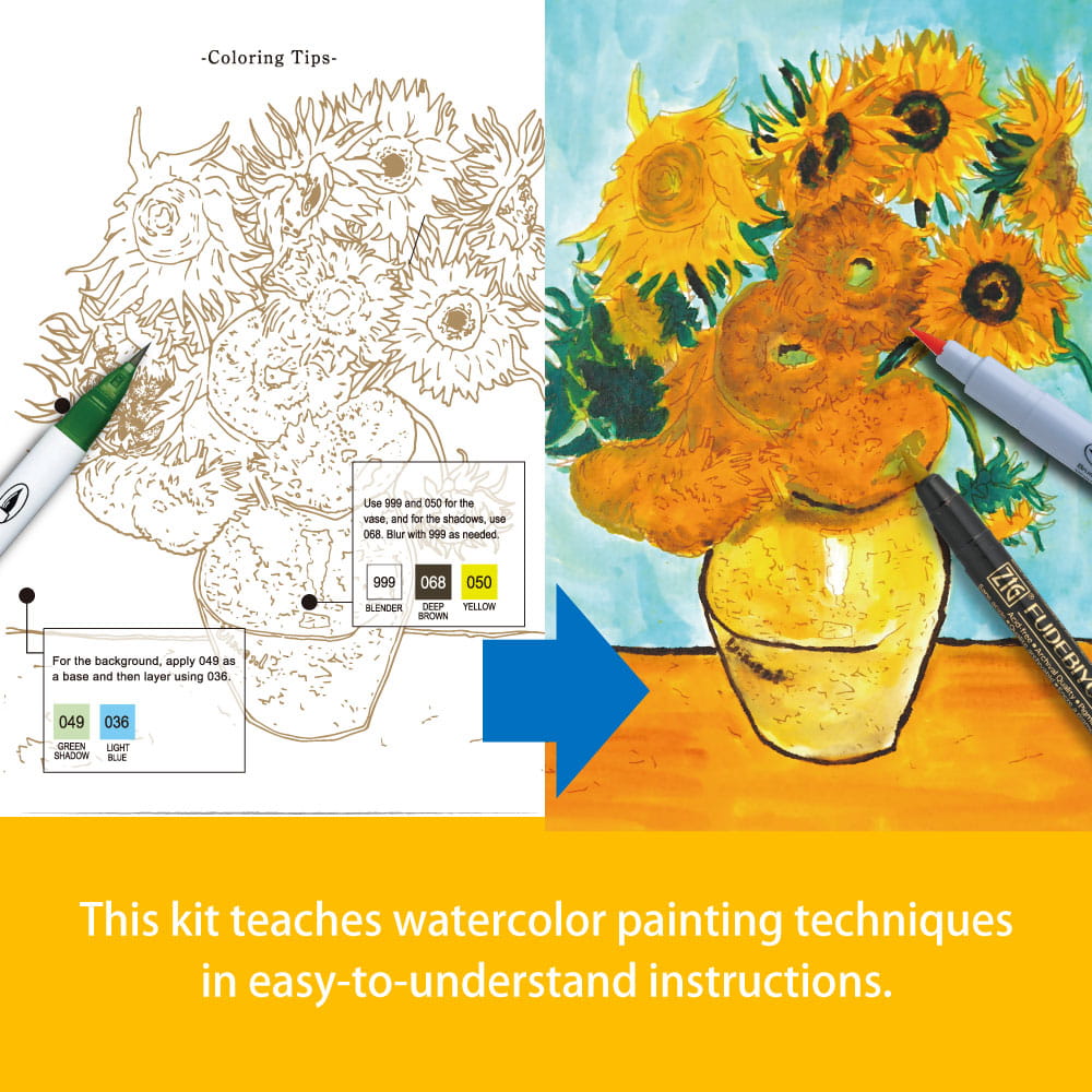 Kuretake Historic Art Collection – Vincent van Gogh is een inspirerende collectie die creatieve makers laat kennismaken met het kleurgebruik, de penseelvoering en de expressieve stijl van Vincent van Gogh, Deze uitgave is bedoeld als bron van inspiratie voor kunstenaars die zich willen verdiepen in kunstgeschiedenis en deze willen vertalen naar hun eigen creatieve werk,