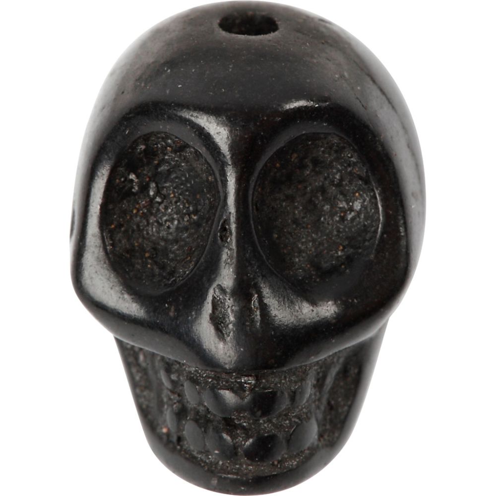 Howlite Skull – d 12 mm, gatgrootte 1,5 mm, Zwart – 8 stuk