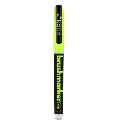 Karin Brushmarker Pro 0210 Neon Yellow Green – krachtige neon brushmarker op waterbasis