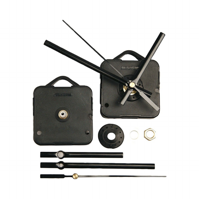 Met dit uurwerkmechanisme bouw je moeiteloos klokken met een wijzerplaat tot 10 mm dik. Deze variant is bijzonder geschikt voor hout, multiplex, dikkere foamplaten of andere stevige materialen. Het uurwerk is krachtig genoeg om soepel te blijven lopen en wordt geleverd met een complete set wijzers.
