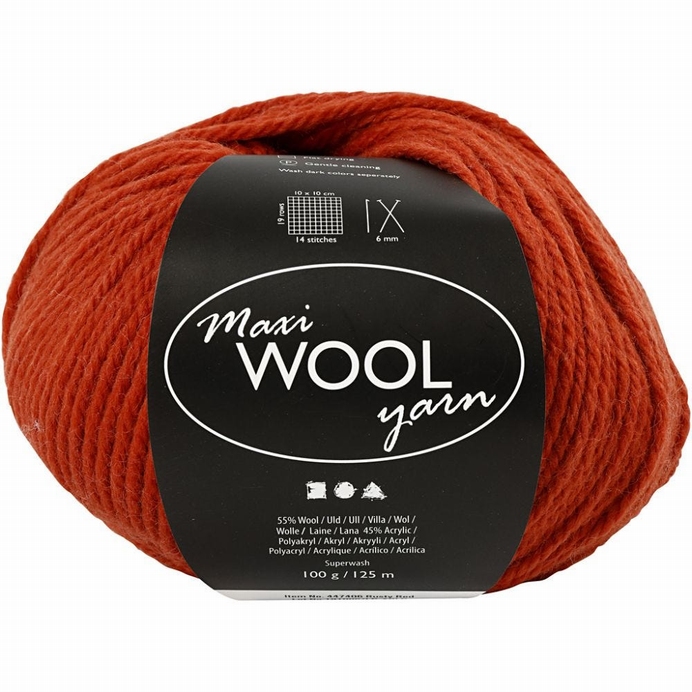 Maxi Wool Yarn -rust red, L: 125 m, 100 gr