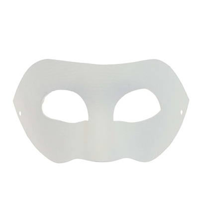 Een licht papier‑maché masker met stevige basis voor verf, stift, bladmetaal of decopapier.