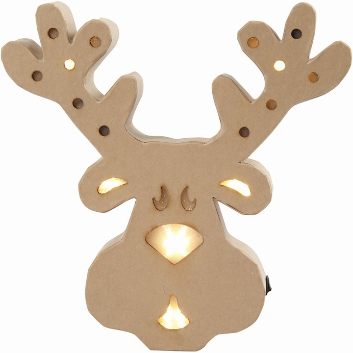 Gebruik Papier Mache Rendier ingebouwd licht, h: 28, b: 27, d 4cm voor schilderen, decoreren, knutselwerk en mixed media experimenten.